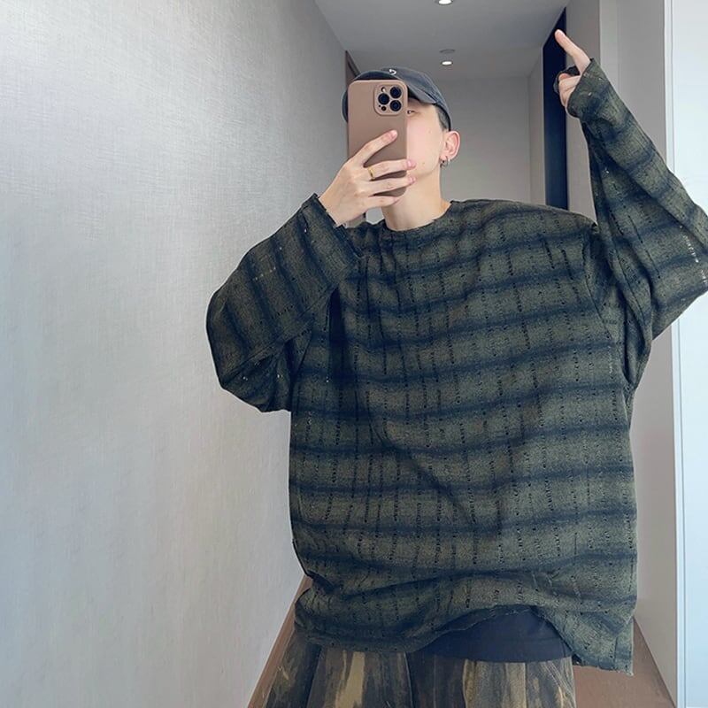 dannyandzeeダメージ加工チェック柄ロングスリーブTシャツ