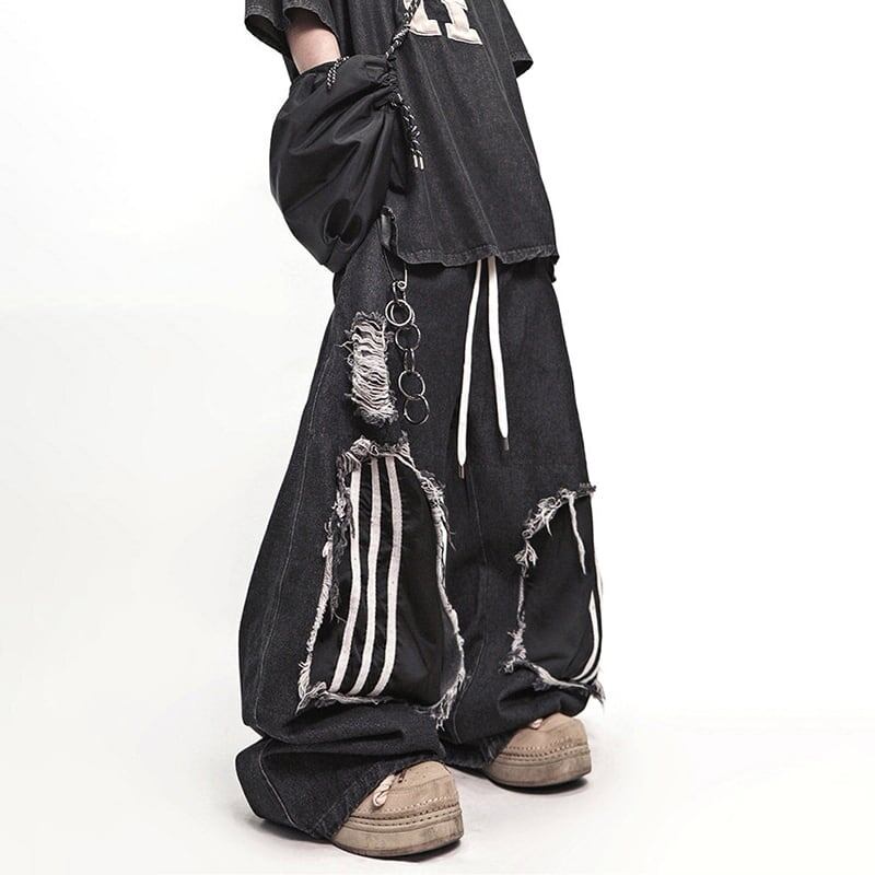 UUCSCCダメージ加工パッチワークデザインワイドパンツ