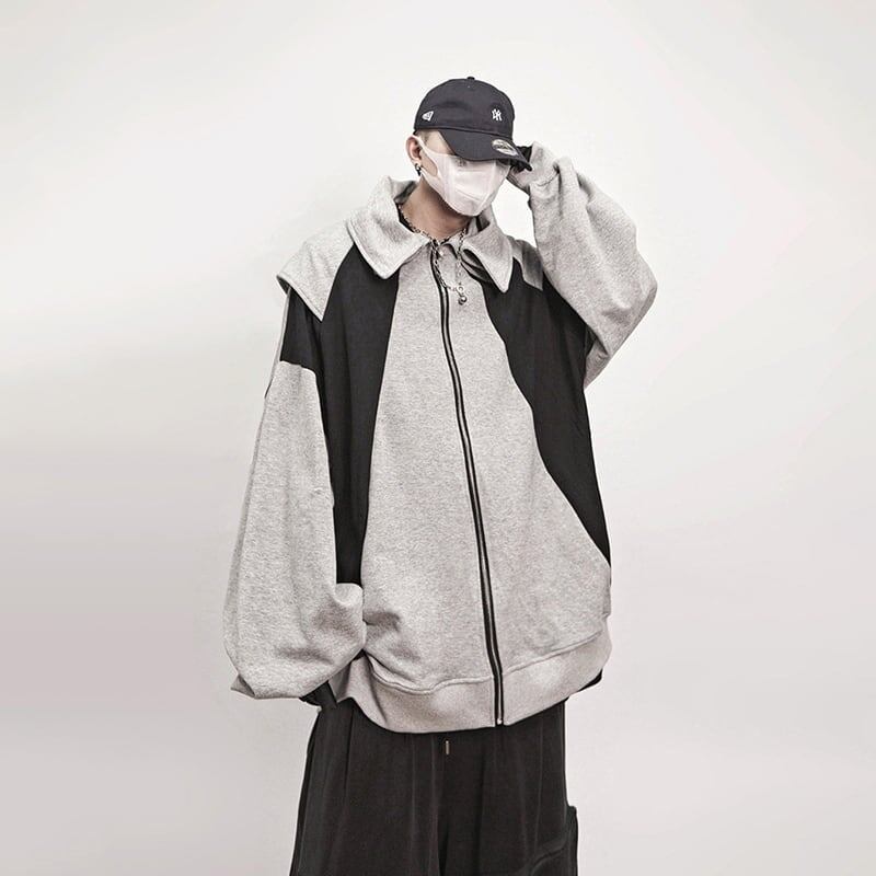 UUCSCCコントラストカラーフード付きジップアップパーカー