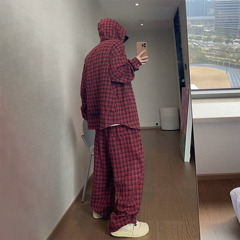dannyandzeeグラフィックプリントチェック柄ワイドパンツ