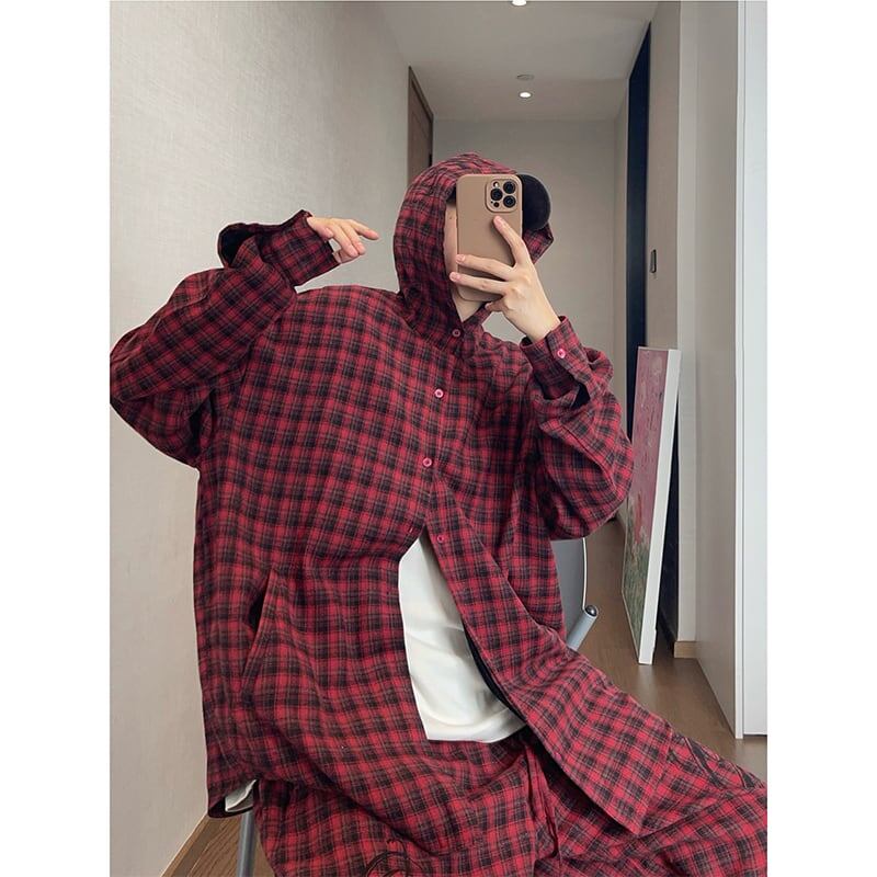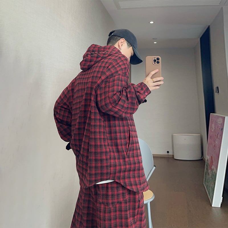 dannyandzeeこなれ感フード付きチェックシャツ