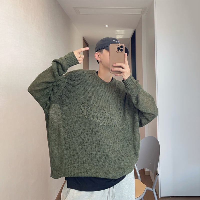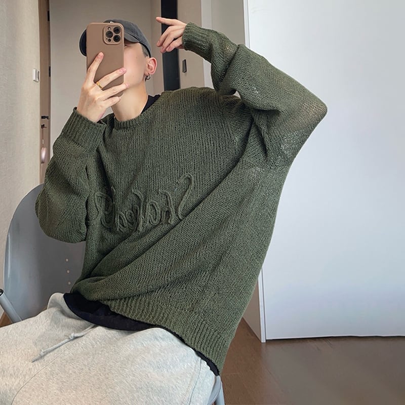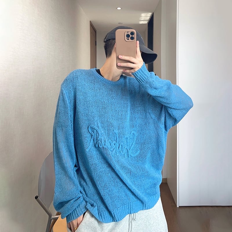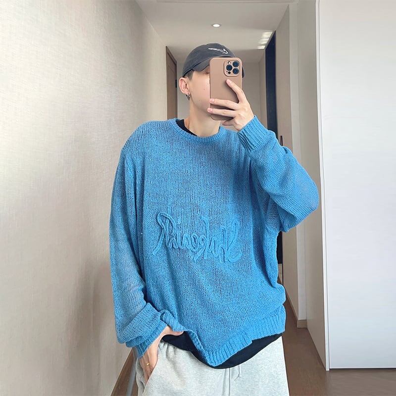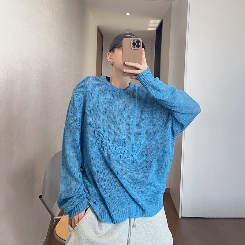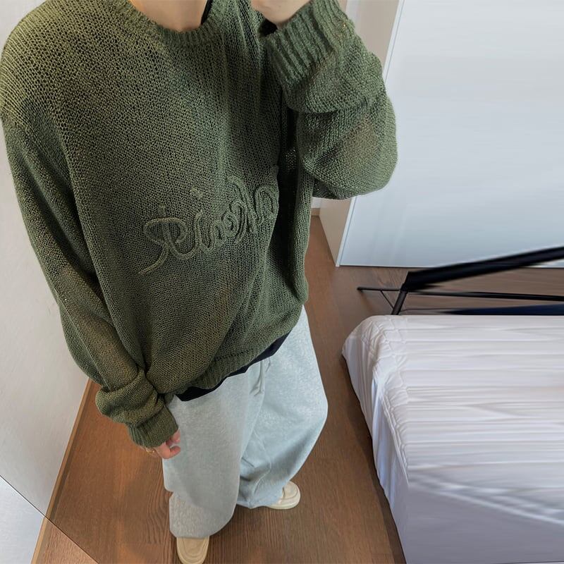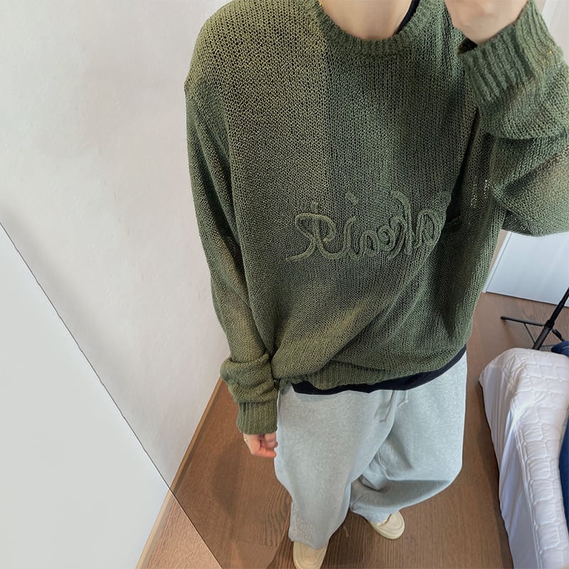 dannyandzee立体ロゴレース編みレイヤードスタイル薄手ニット