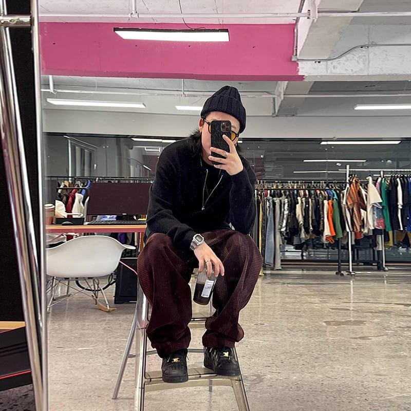 Medaigualタイダイチェックフロッキーデニムパンツ