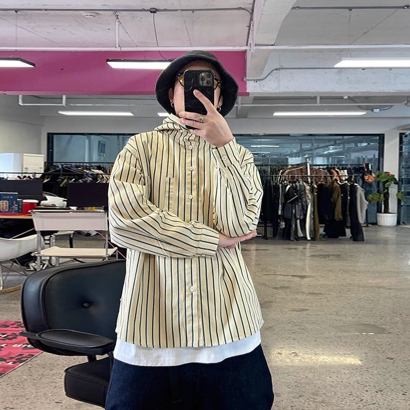 Medaigualストライプ柄 フード付きシャツ