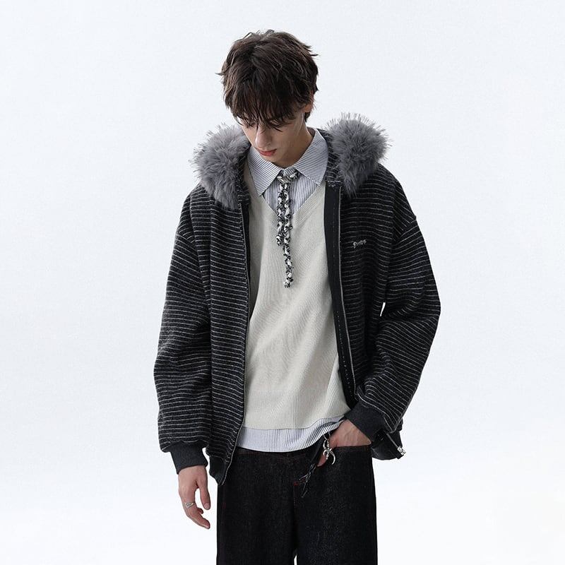 MRNEARLYボーダー柄ジップアップフード付きパーカー