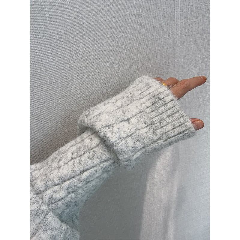 dannyandzeeケーブルフード付きニットセーター