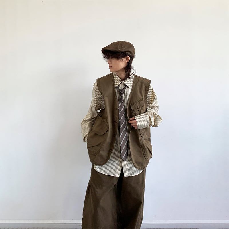 jiwuusポケット付きVネックベスト