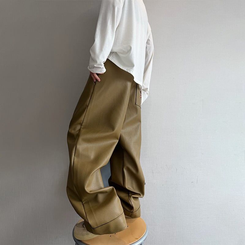 dannyandzeeレザーテクスチャストレートパンツ