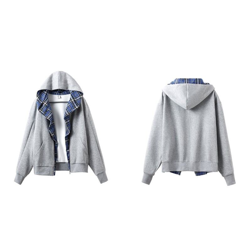 SHAKEYU重ね着風ジップアップフード付きパーカー