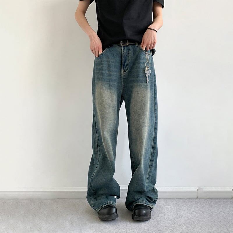 jiwuus全3色ウォッシュストレートデニムパンツ