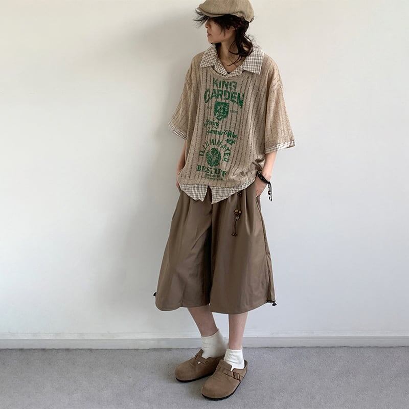 jiwuusレイヤード2枚重ね着半袖Tシャツ