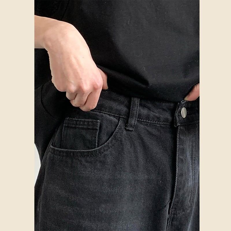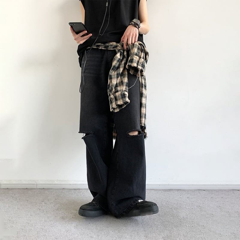 jiwuus黒色ダメージデニムパンツ