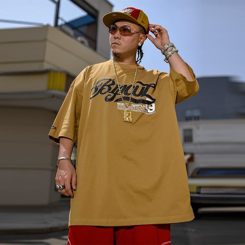 BLACUL英字プリントストリート半袖Tシャツ