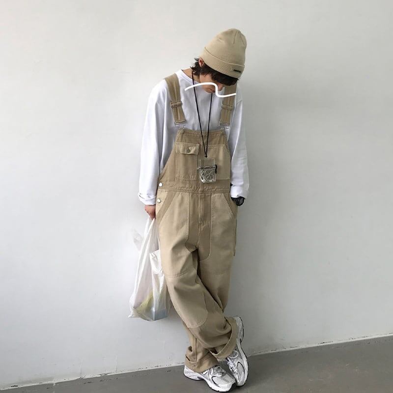 カラーブロックデニムサロペットパンツ