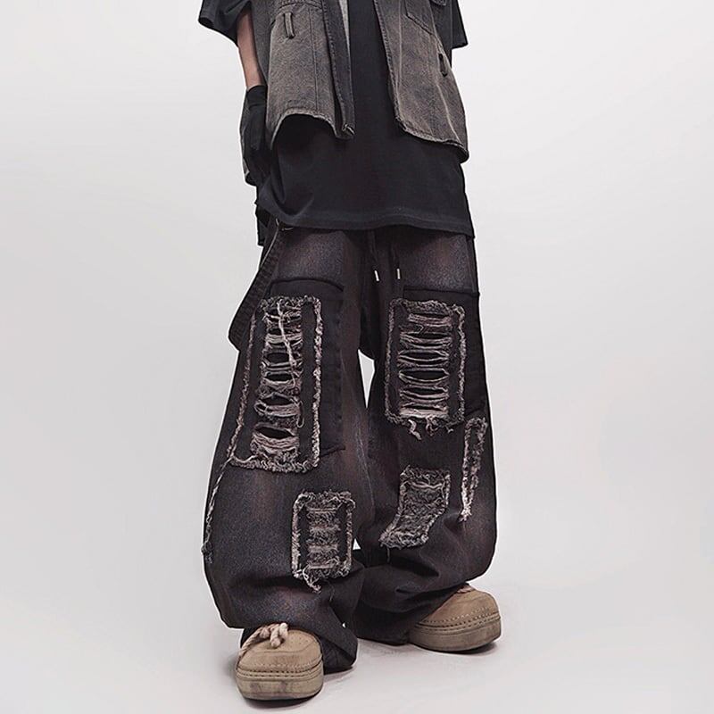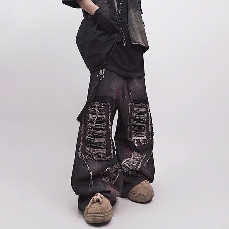 UUCSCCレトロ加工破れワイドデニムパンツ