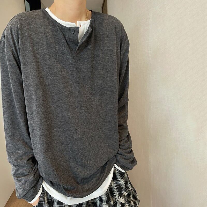 dannyandzee1ボタンデザインレイヤード対応薄手Tシャツ