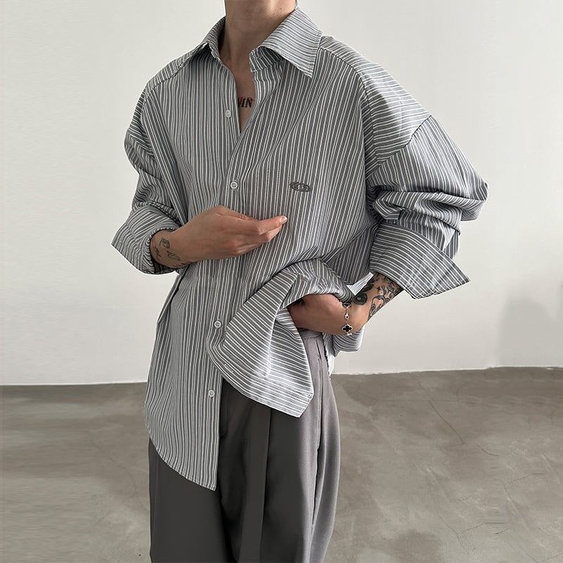 VERY FEWESTストライプ清涼感コットン長袖シャツ