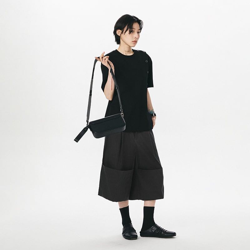 sameuooラウンドネックボタンデザイン半袖Tシャツ