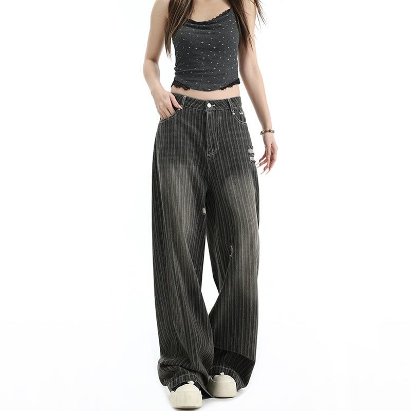 INSstudios縦縞ウォッシュドデニムパンツ