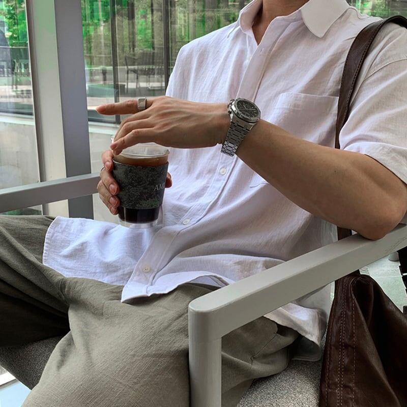 SSUMENAMリネン素材薄手通気性半袖シャツ