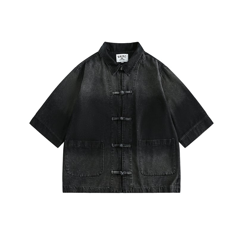jiwuusチャイナ風デニム半袖シャツ